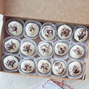 Las nueces confitadas son un clásico irresistible de Sof Cakes:Nueces tostadas para un sabor intenso, junto con un cremoso dulce de leche y un baño de chocolate blanco que las vuelve un bocado totalmente adictivo. Elegantes, golosas y perfectas para regalar o darse un gusto sin excusas. Cajas de 8 o 15 unidades.