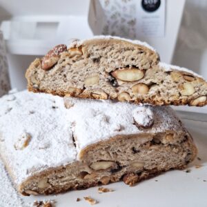 El stollen alemán es un pan dulce tradicional de Navidad, denso y perfumado. Lleva frutas secas maceradas, nueces, almendras, castañas de cajú, chips de chocolate y especias. La masa es mantecada, suave y ligeramente húmeda, pero no esponjosa como un pan dulce argentino: es más compacta, pensada para conservarse varios días mientras los sabores se…
